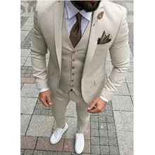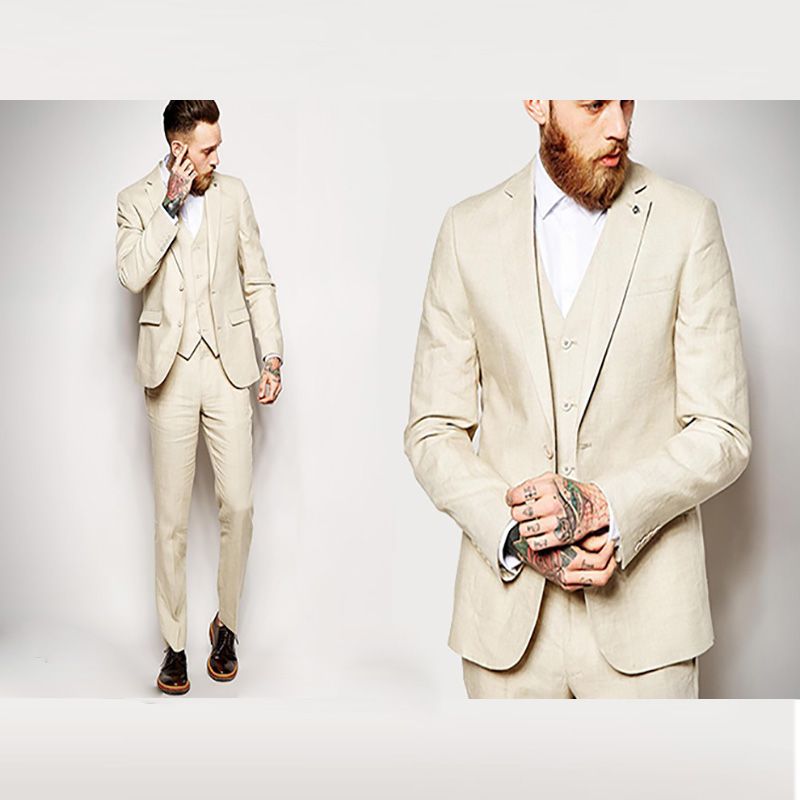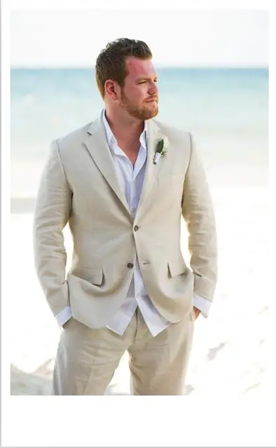 2018 Beige Lin Hommes Costumes Pour Le Mariage Plage Custom Made