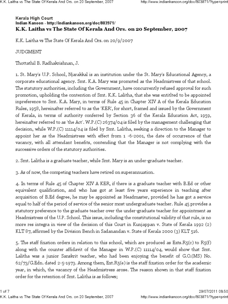 K K Lalitha Vs The State Of Kerala And Ors On 20 September