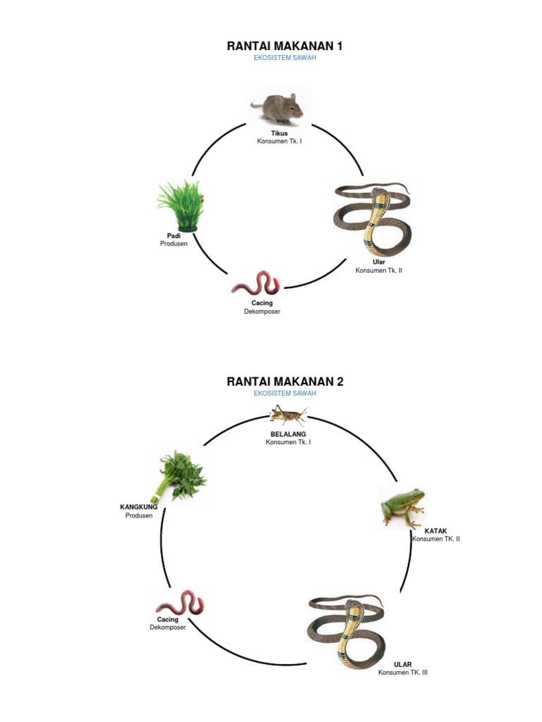 2.rantai saprofit, yaitu rantai makanan yang terjadi untuk mengurai organisme yang sudah mati. Gambar rantai makanan di sawah, kebun, hutan, sungai, laut, dan manusia. Tuhan menciptakan alam semesta dan seisinya, semuanya saling terkait dan membutuhkan satu sama lain. Pada kesempatan kali ini akan membahas materi tentang rantai makanan yang juga meliputi pengertian, jenis, contoh dan gambarnya lengkap. Rantai makanan adalah suatu proses makan atau dimakan antara makhluk hidup dengan tujuan perpindahan energi makanan.