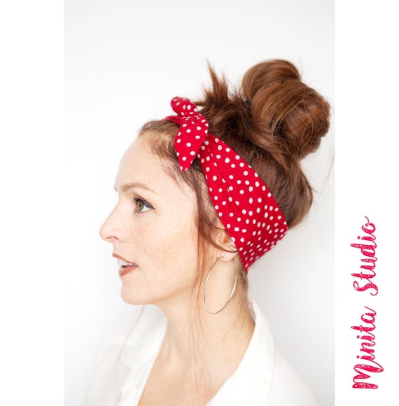 Red Tie On Hairscarf Red Polka Dot Headband Rosie The Riveter Bandana Pinup Rockabilly Women Hair Accessories Red Bandana Valentine Day Gift